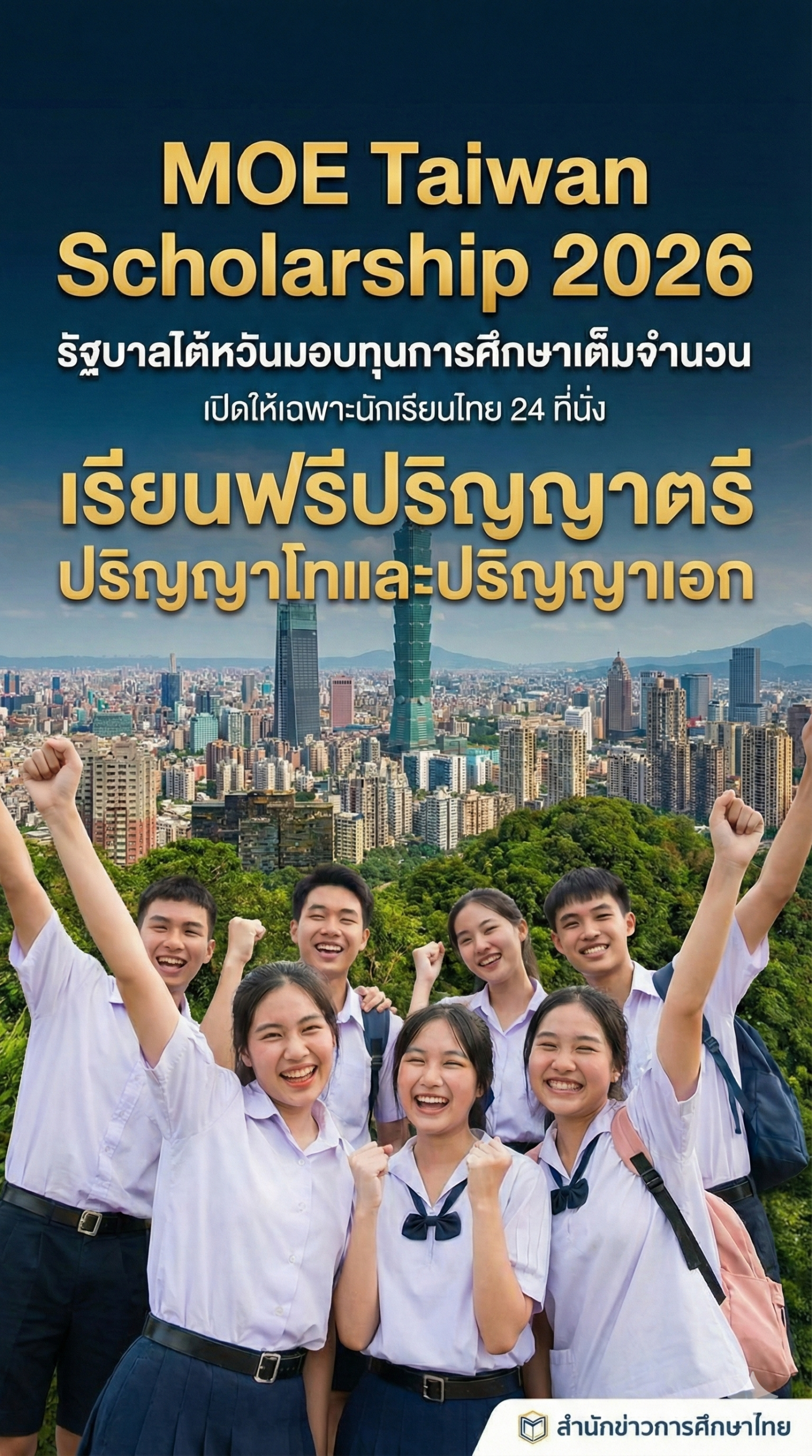 โอกาสมาถึงแล้ว! ไต้หวันมอบทุนการศึกษาเต็มจำนวน “MOE Taiwan Scholarship 2026” เปิดรับสมัครนักเรียนไทย 24 ที่นั่ง เริ่ม 1 ก.พ. นี้