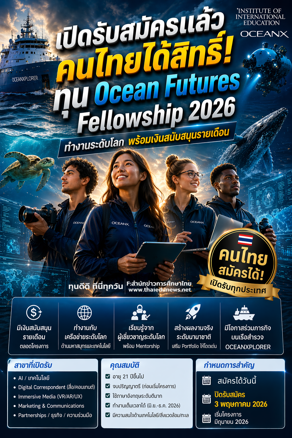 ð āđāļāļīāļāļĢāļąāļāļŠāļĄāļąāļāļĢāđāļĨāđāļ§! āļāļļāļ Ocean Futures Fellowship 2026 āļāļģāļāļēāļāļĢāļ°āļāļąāļāđāļĨāļ āļāļĢāđāļāļĄāđāļāļīāļāļŠāļāļąāļāļŠāļāļļāļāļĢāļēāļĒāđāļāļ·āļāļ (āļŠāļĄāļąāļāļĢāđāļāđāļāļļāļāļāļĢāļ°āđāļāļĻ)