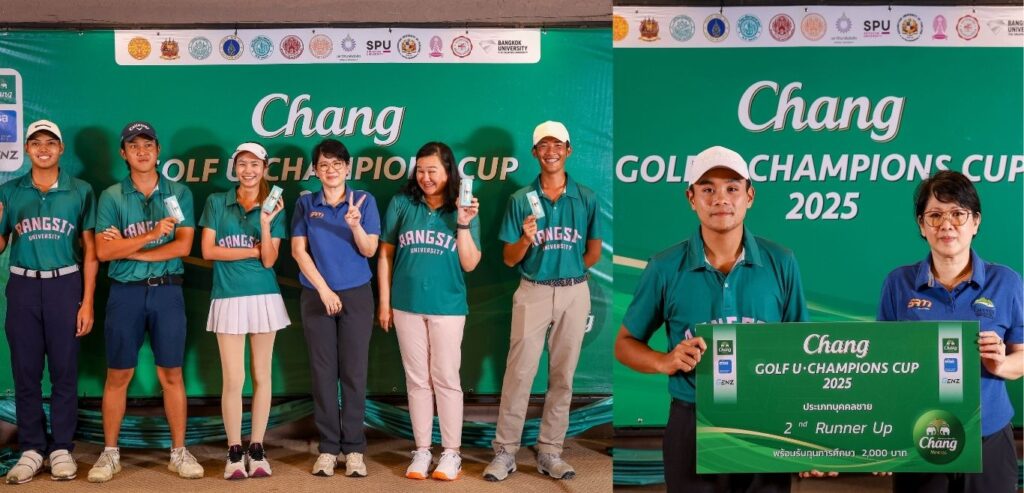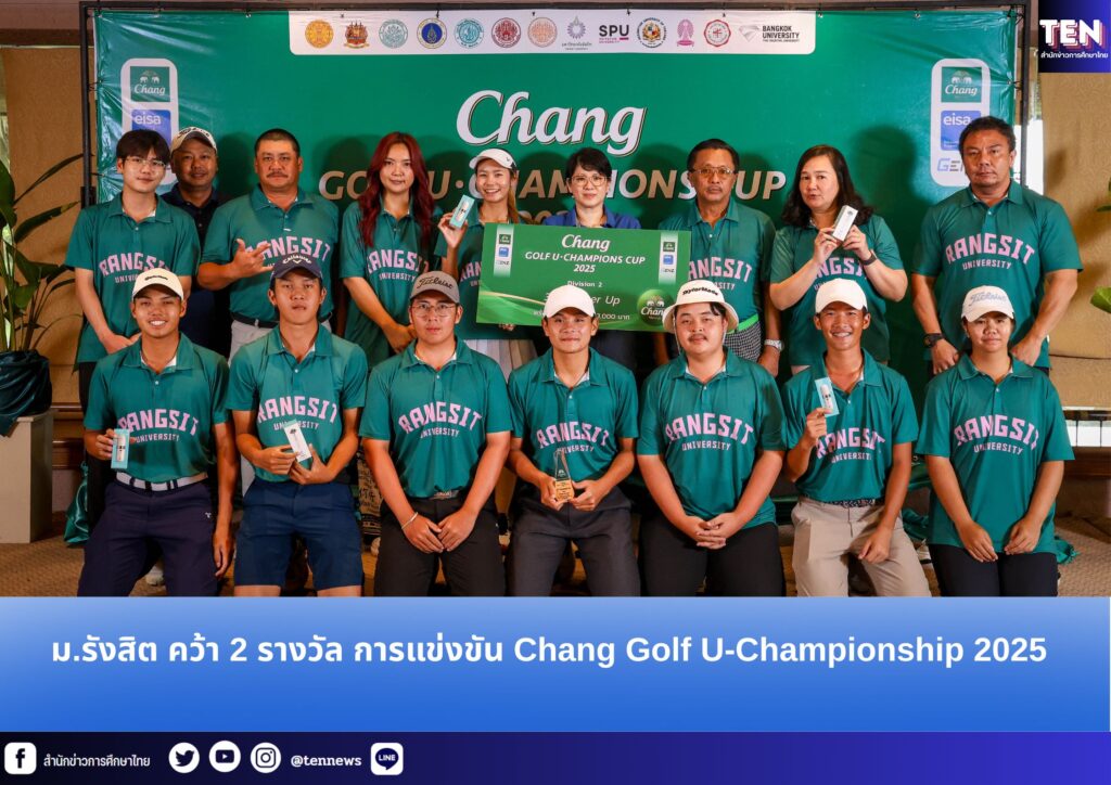 ทีมนักศึกษามหาวิทยาลัยรังสิต คว้า 2 รางวัลจากการแข่งขันกอล์ฟ Chang Golf U-Championship 2025 (Division 2) ณ สนามกอล์ฟ Lake View Resort & Golf Club จังหวัดประจวบคีรีขันธ์ โดยได้รับรางวัลรองชนะเลิศอันดับ 2 ประเภทบุคคลชาย ได้แก่ นายศิริราช โกยสมบูรณ์ หลักสูตรกีฬากอล์ฟ สถาบันกีฬา และรางวัลรองชนะเลิศอันดับ 3 ประเภททีม ประกอบด้วย นายธนภัทร ศิริสุข นางสาววรวลัญซ์ วงศ์กำภู หลักสูตรกีฬากอล์ฟ สถาบันกีฬา, นายวิชญ์พล ธนภัทรโรดม วิทยาลัยนวัตกรรมดิจิทัลเทคโนโลยี และนายภัทรพี สว่างวงศ์ คณะรัฐศาสตร์ ซึ่งการแข่งขันในครั้งนี้ จัดขึ้นเพื่อส่งเสริมนักกีฬากอล์ฟในระดับมหาวิทยาลัย ให้มีโอกาสได้แสดงศักยภาพและพัฒนาทักษะอย่างต่อเนื่อง อีกทั้งสร้างความสัมพันธ์ที่ดีร่วมกันของนักกีฬากอล์ฟระหว่างมหาวิทยาลัย