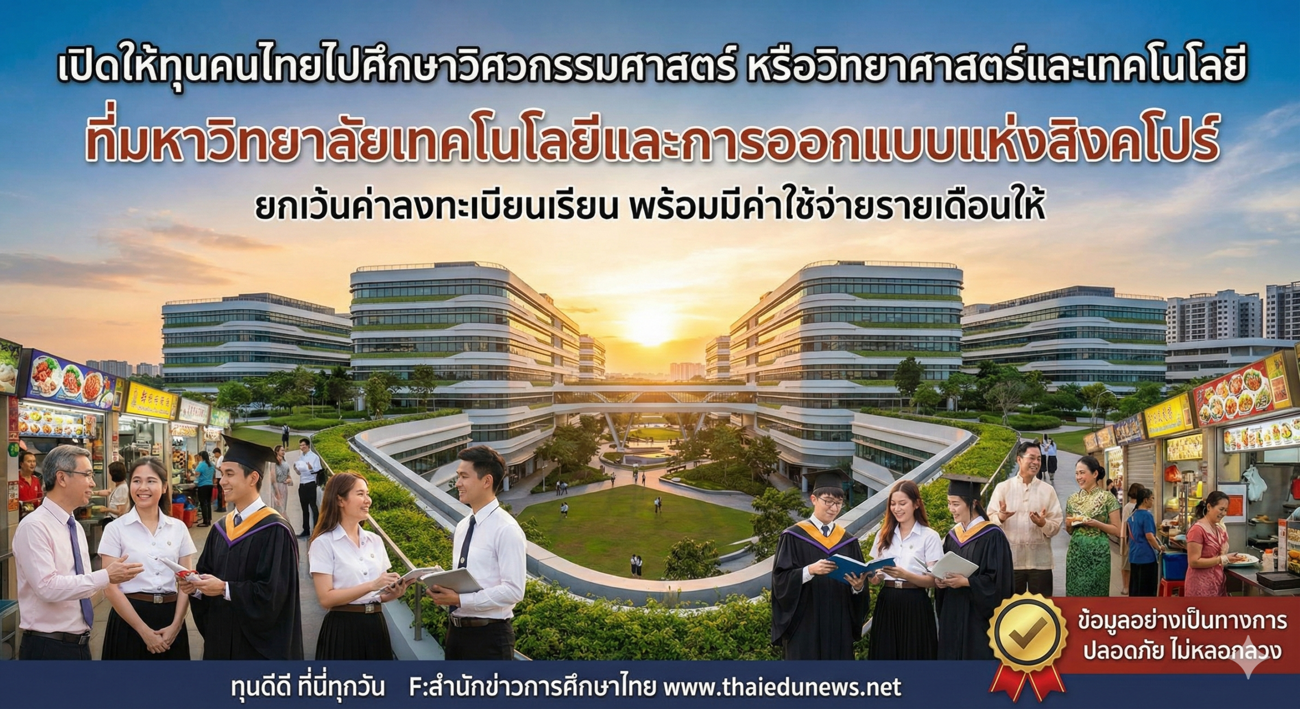 เปิดให้ทุนการศึกษา ไปศึกษาวิชา ณ มหาวิทยาลัยเทคโนโลยีและการออกแบบแห่งสิงคโปร์ (Singapore University of Technology and Design: SUTD) สาธารณรัฐสิงคโปร์ ระดับปริญญาเอก หลักสูตรภาษาอังกฤษ ประจำปีการศึกษา 2569 (ค.ศ. 2026)