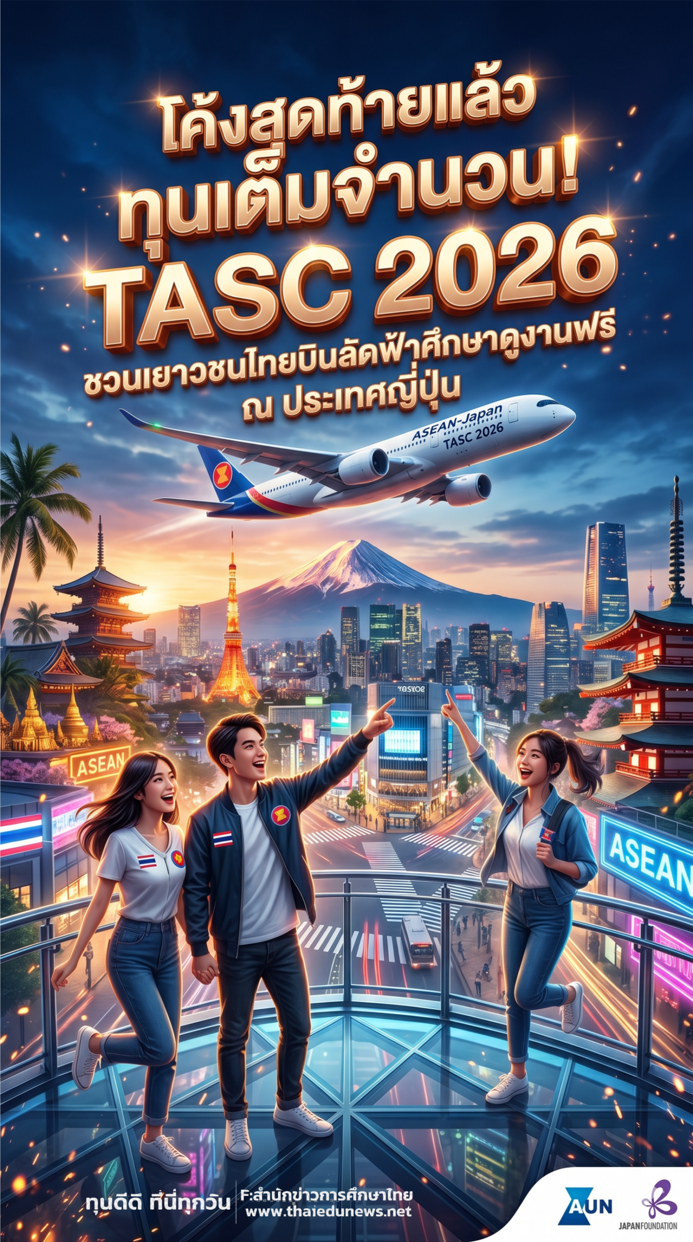 #TASC2026 #ทุนเต็มจำนวน #ไปญี่ปุ่นฟรี #ASEANJapan #ทุนแลกเปลี่ยน #เยาวชนไทย #สำนักข่าวการศึกษาไทย #AUN #JapanFoundation #Environment #SocialChange